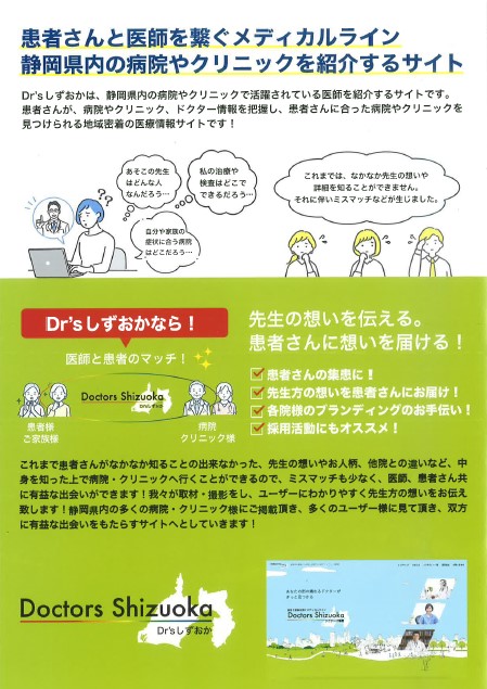 『Doctors Shizuoka-Dr’sしずおか』は静岡県内の病院やクリニックを紹介するサイトです。