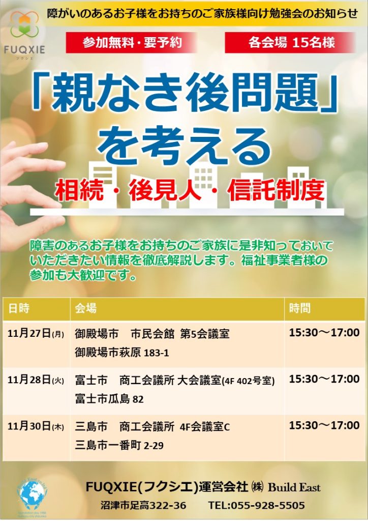 【セミナーのご案内】解決の一歩へ。親なき後問題を考えるセミナー11月(終了いたしました。)