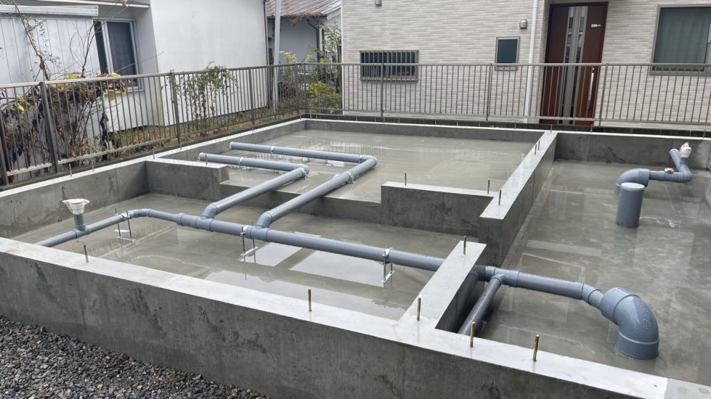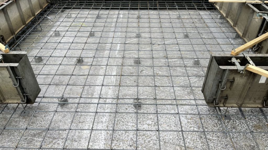 工期短縮の為、基礎一体打ち工法にてコンクリートを打設しました。