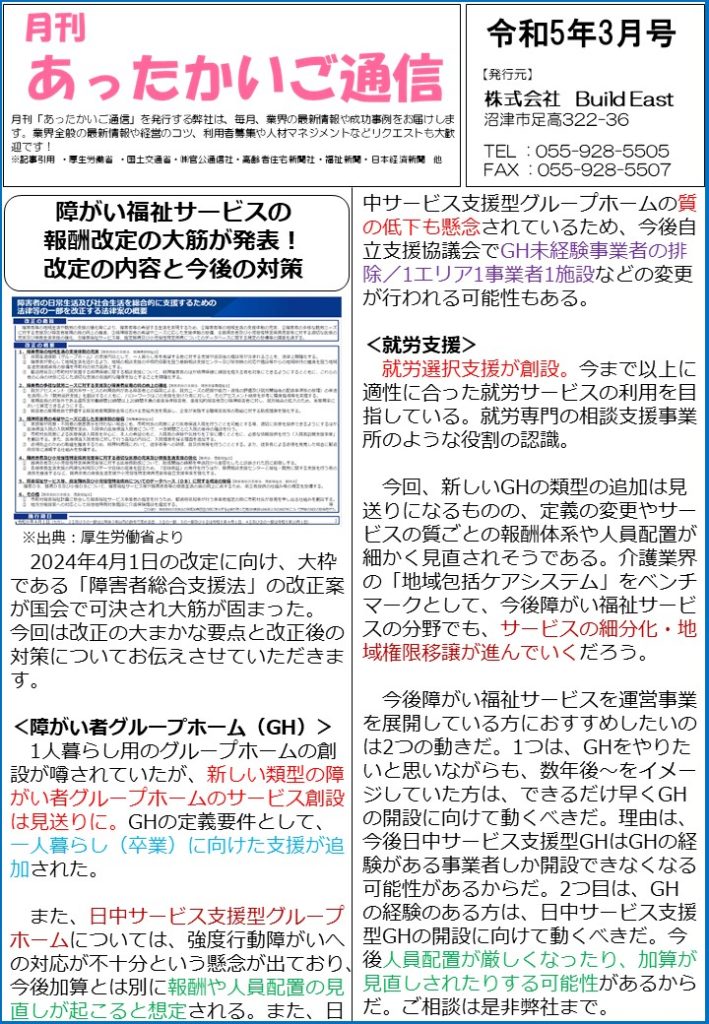 【月刊あったかいご通信 令和5年3月号】障がい福祉サービスの報酬改定の大筋が発表!改定の内容と今後の対策