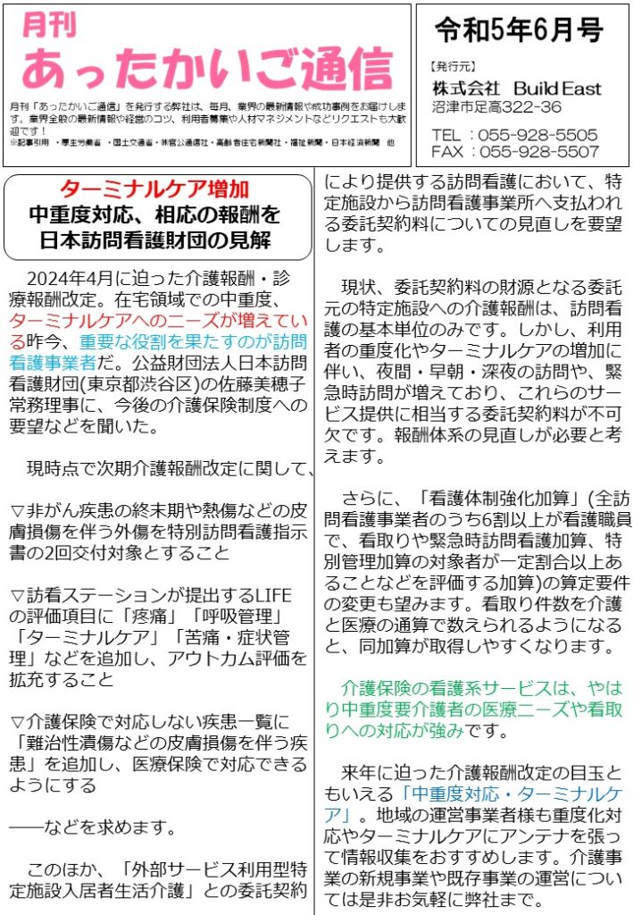 【月刊あったかいご通信 令和5年6月号】ターミナルケア増加