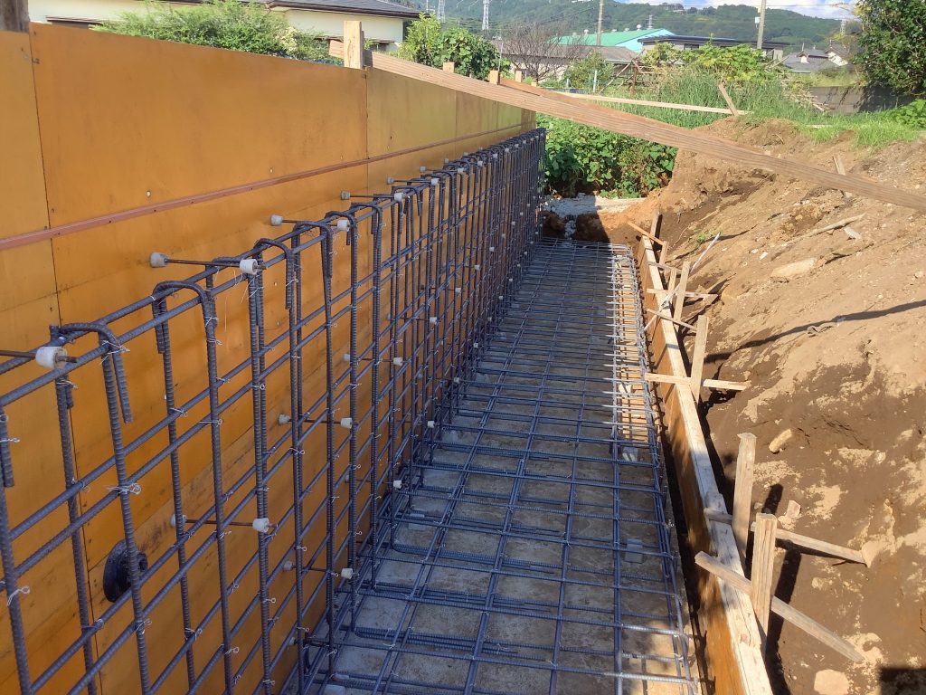 写真は敷地外周部の擁壁工事をしています。これから、基礎工事、建方工事と行っていきます。