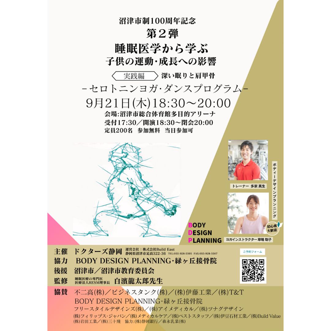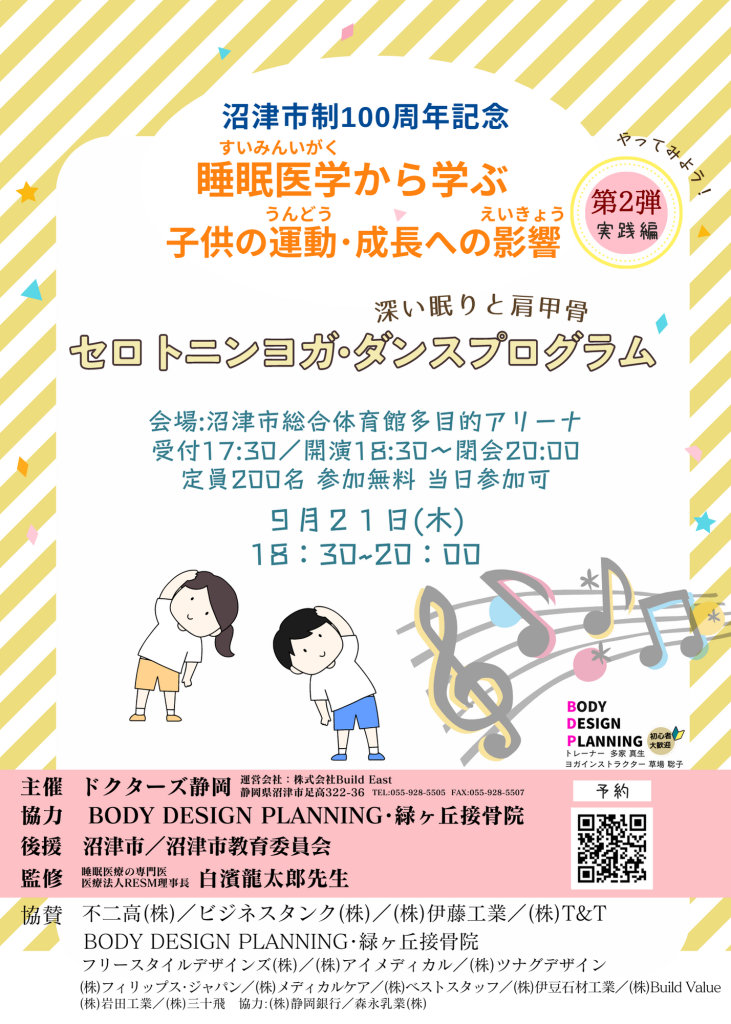 【セミナーのご案内】沼津市制100周年記念 【第2弾】睡眠医学から学ぶ 子供の運動・成長への影響 (終了いたしました。)