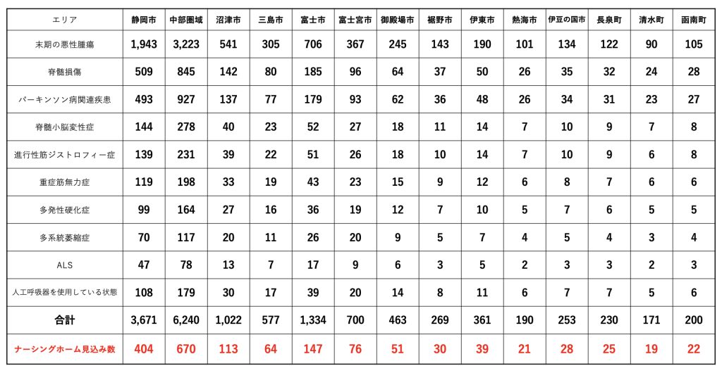 静岡県東部地区においては、630床程度の需要があると予想されます