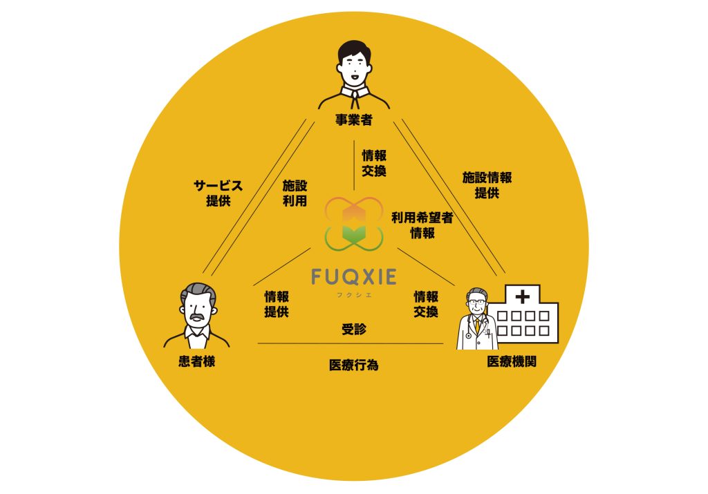 フクシエは、医療依存度の高い利用者への対応を行う運営事業者と随時情報交換を行い、最新情報の発信ができる体制を築いています。 医療機関とも情報交換を行い事業者との仲立ちをすると共に、ニーズに合った施設と事業計画を提案していきます。