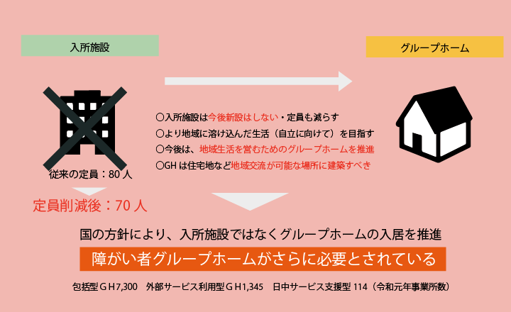 国は、入所施設ではなくグループホームへの入居を推進するとの方針を強く打ち出しており、