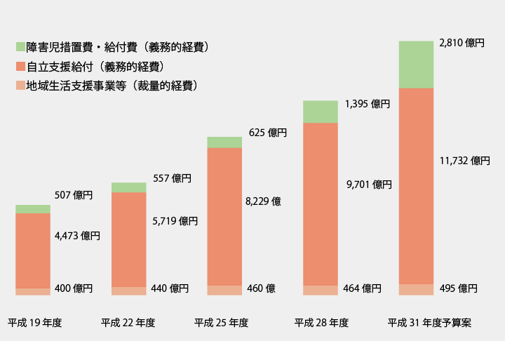 障がい福祉サービス関連の国の予算は、10年間で3倍以上に増加しており、