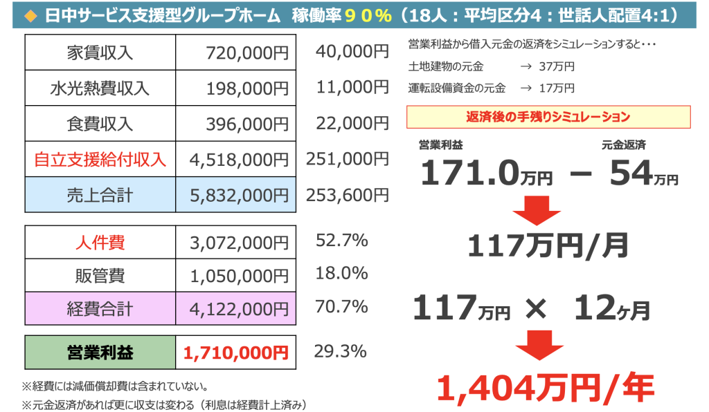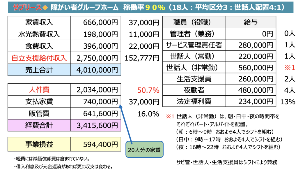 包括型グループホームで一人16.2万円、日中サービス支援型で25.1万円です。